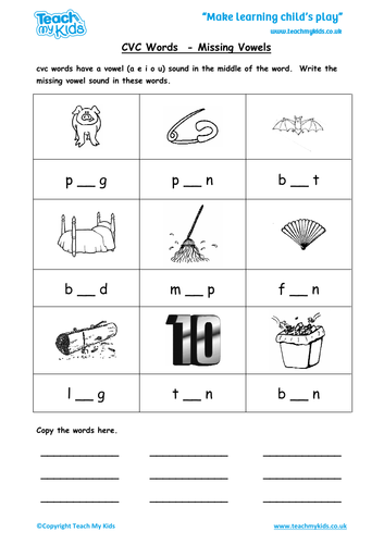 Phonics Cvc Words Missing Vowels Pictures And Words Teaching