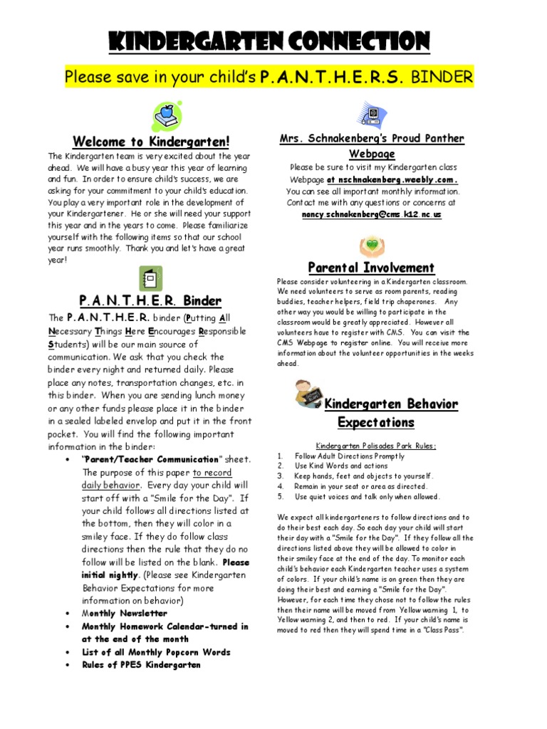 Kindergarten Expectations Kindergarten Churchland Elementary School