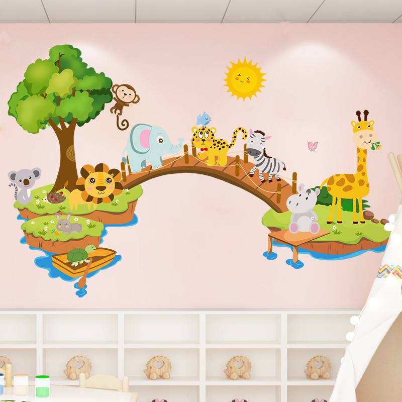 Kindergarten Classroom Culture Background Wall Decoration Cartoon Magic Animal Wall Sticker Children Room Creative Stickers Mural Shopee Indonesia