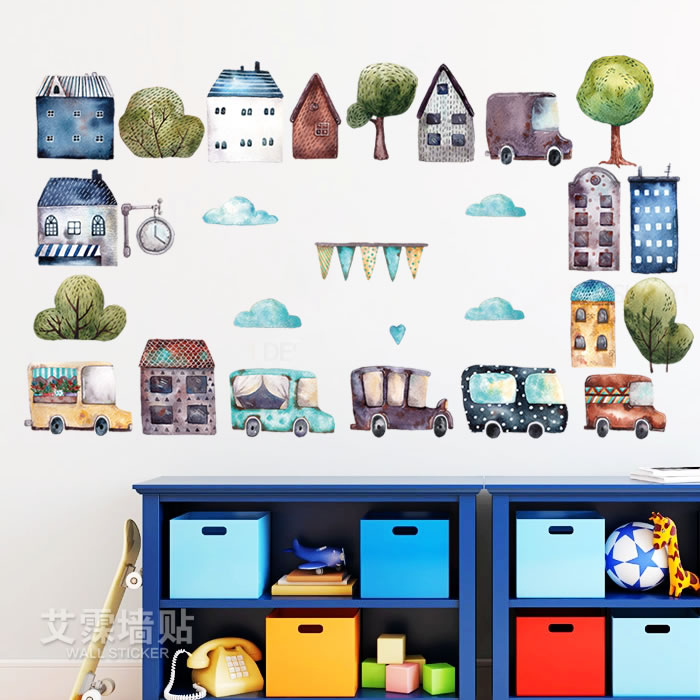Buy Wall Stickers Retro Car Small Town Kindergarten Classroom Cartoon Background Wall Children Wall Stickers Self Pasted Painting Decoration On Ezbuy My