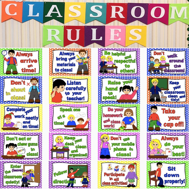 20pcs Set English Classroom Rules Kindergarten A4 Posters