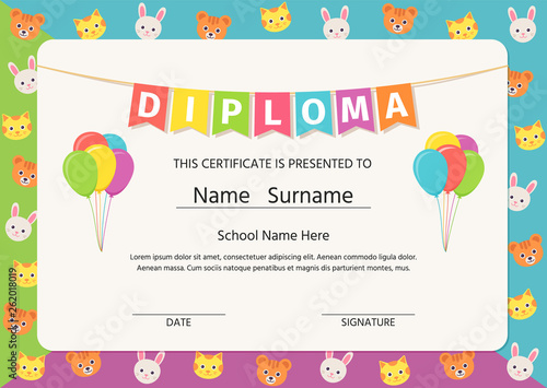 Certificate Kids Diploma Kindergarten Template Layout Space