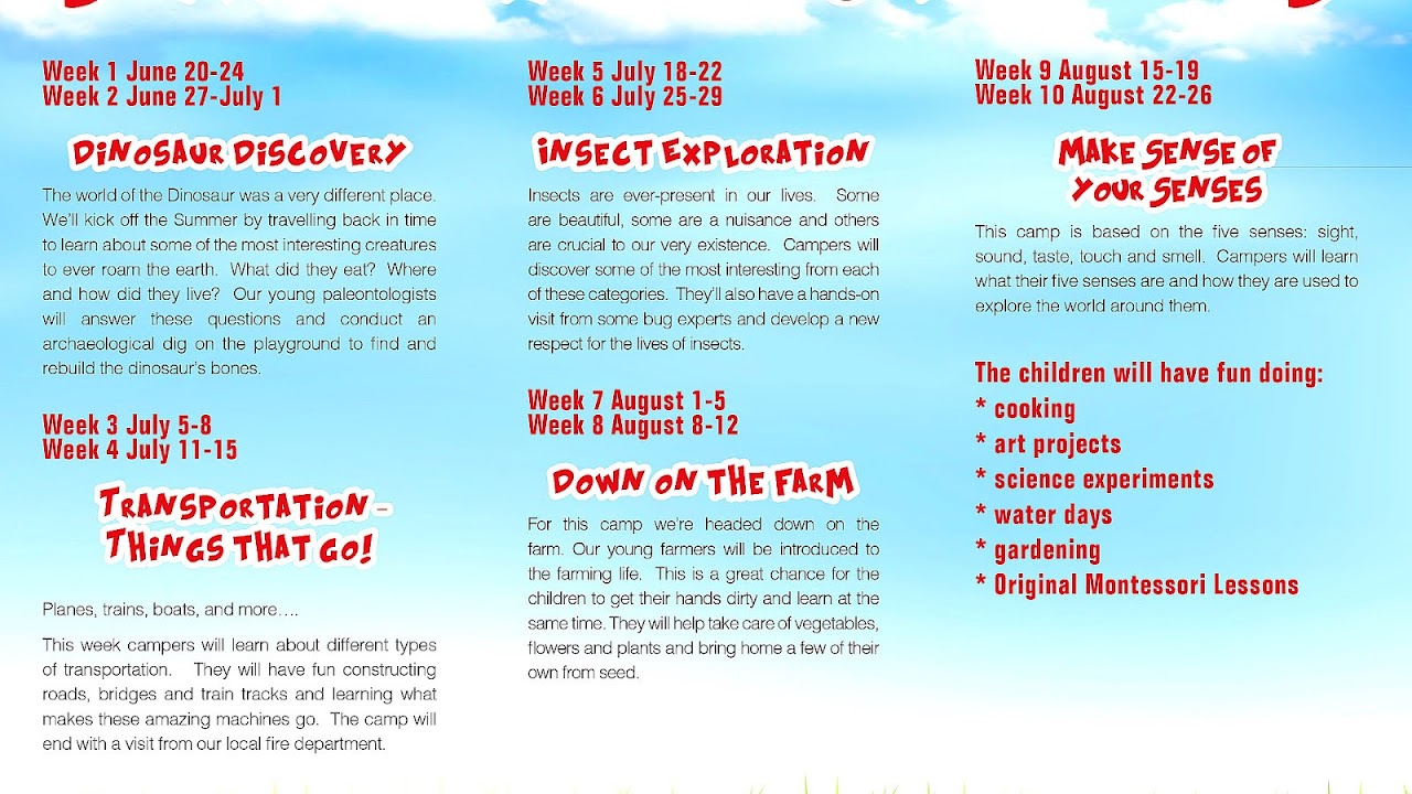 Summer Camp Weekly Themes Free Horizon Montessori Pk 8