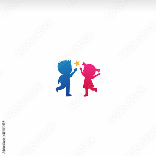 Vector Art Isolated Colorful Kids Silhouette Vector Logo